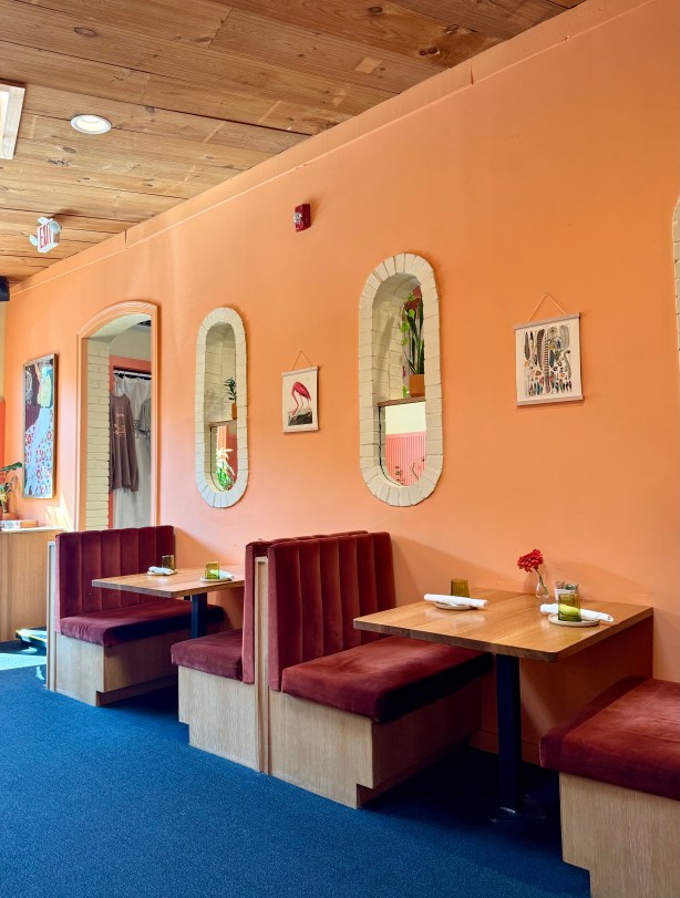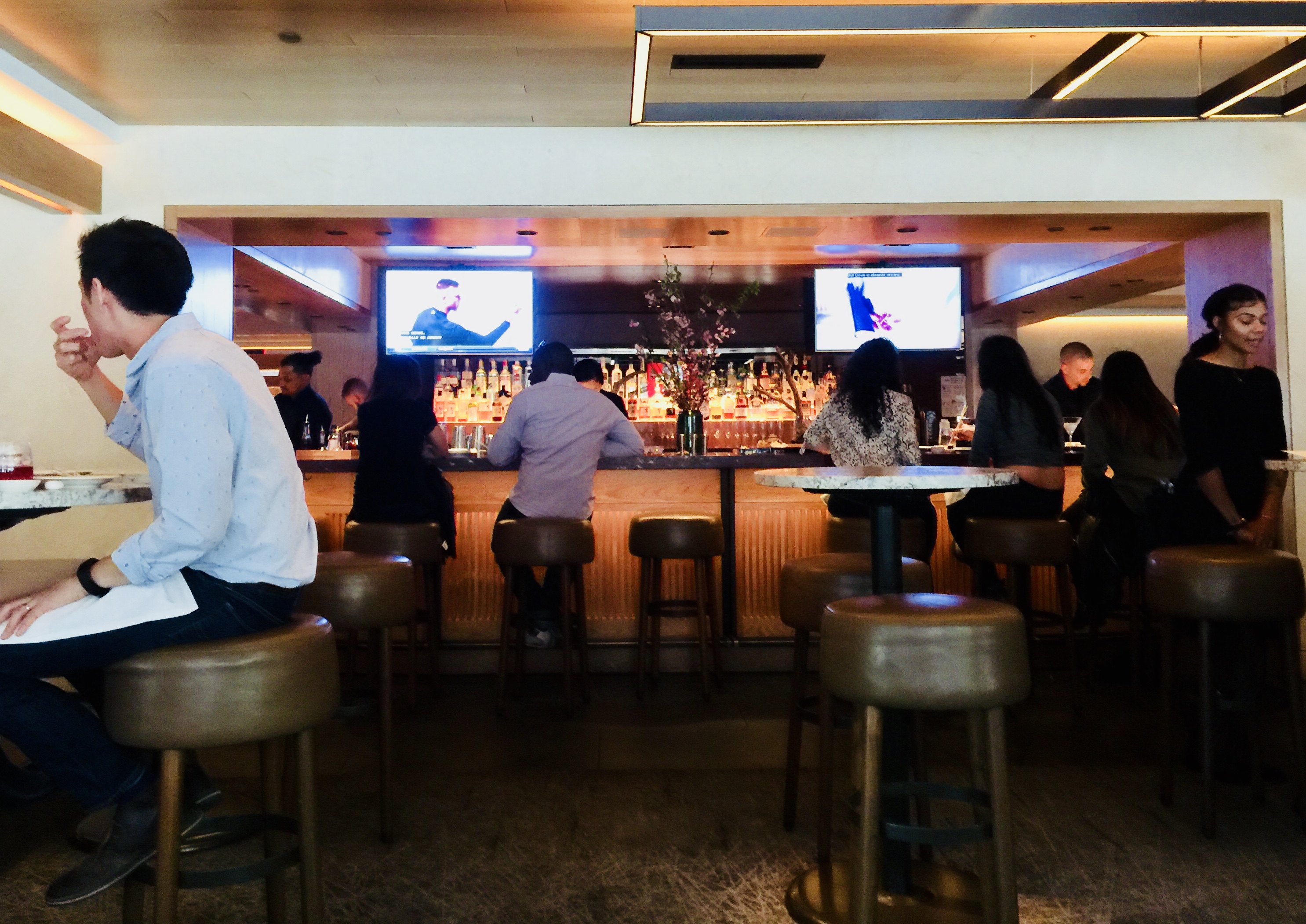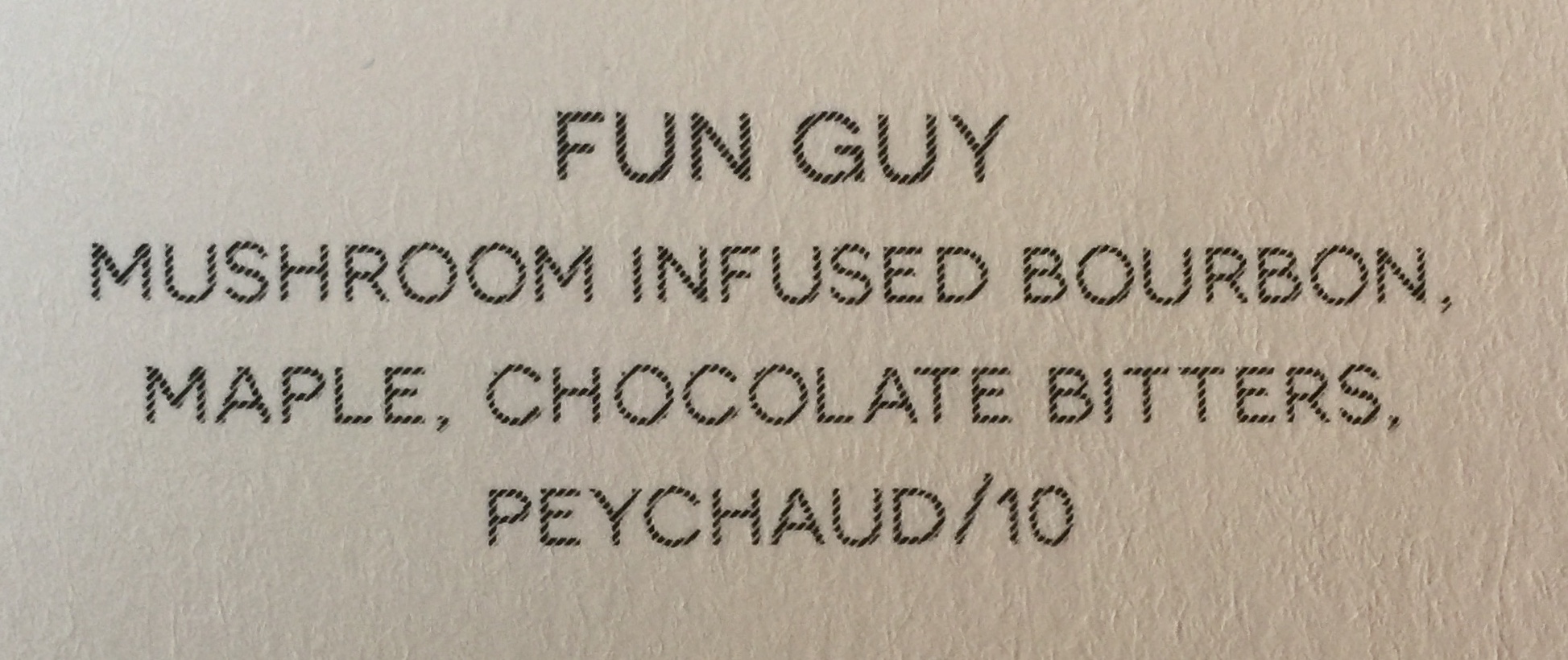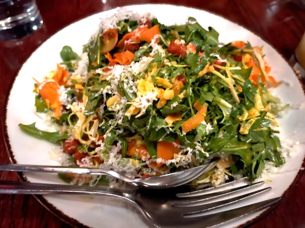 A small, neighborhood eatery with loyal local customers, Tail Up Goat was fun, bright, and eclectic. Cocktails were again served in tiny glasses, but the food was interesting and challenging in a good way: bold flavors and spices on our lamb ribs with yogurt-za’atar onions on the side. The biggest negative was an extremely small menu. Two of the three main courses offered were for two people, so if you were dining alone, that gave you only one choice. 3 out of 5.