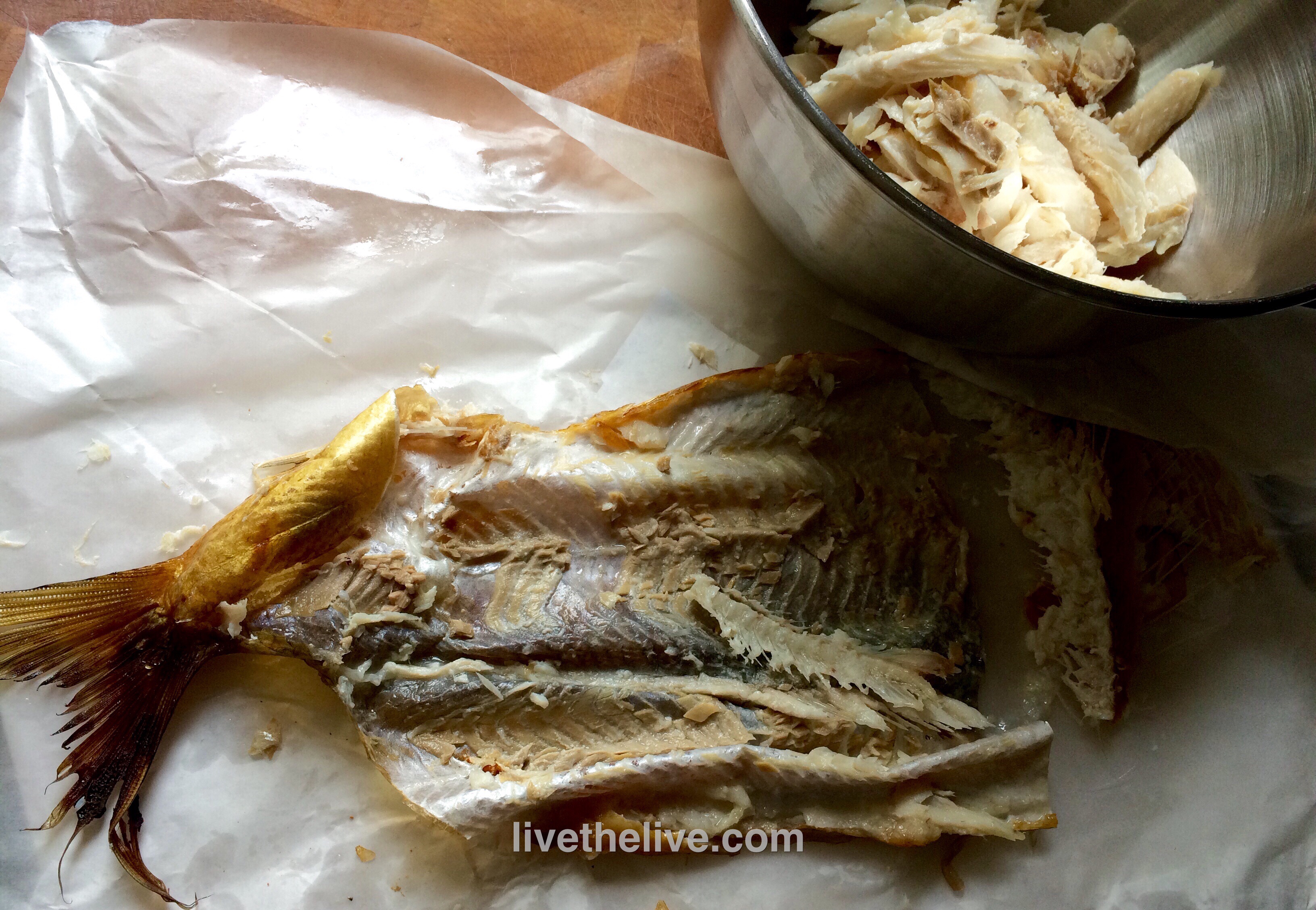 Chop up the two hard-boiled egg yolks and placed them in a large wooden bowl, big enough for the salad. Add the juice of half a lemon, the Dijon mustard, and the capers.