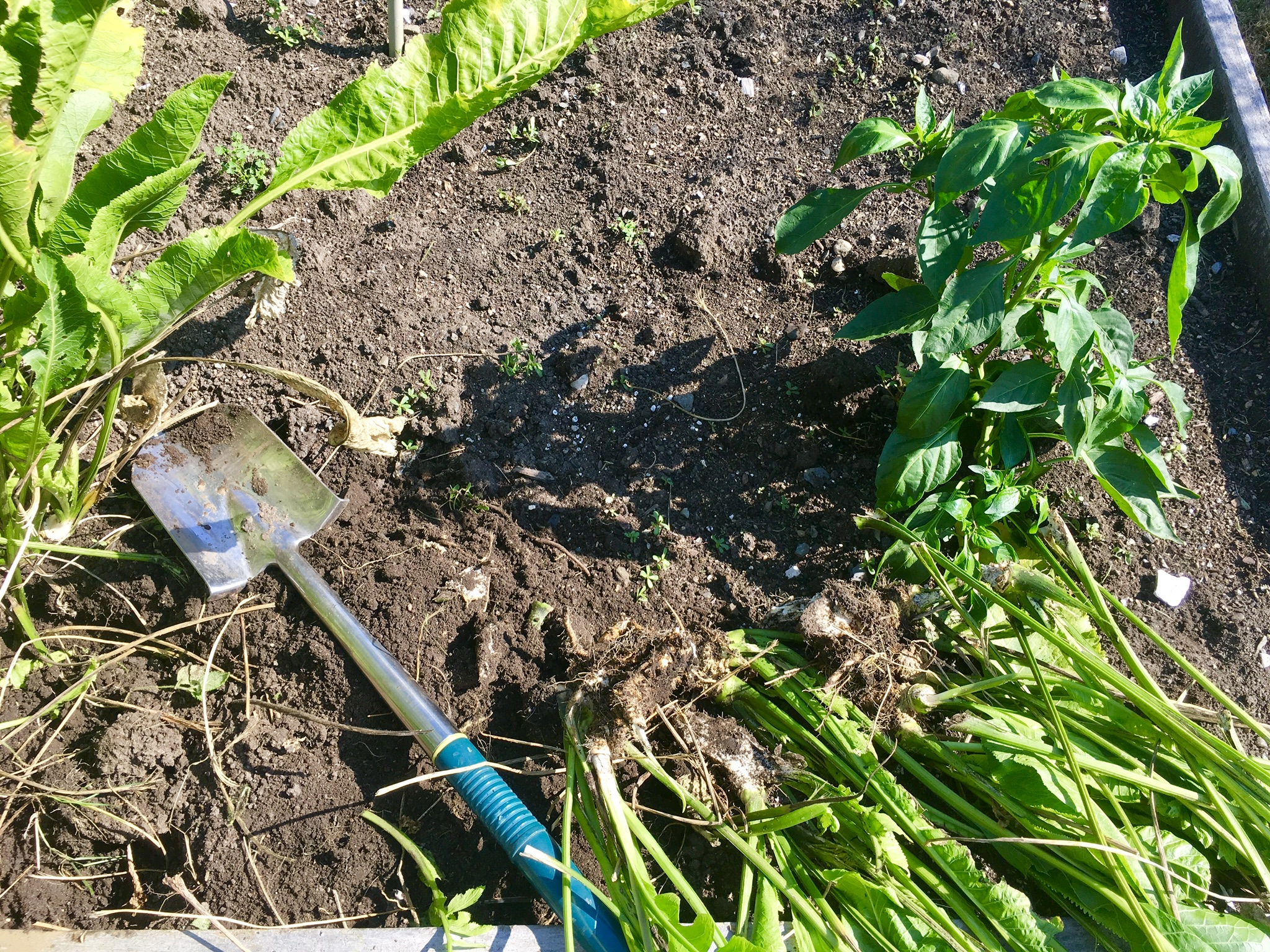 My research for Salmon Smørrebrød resulted in many variations, but I ultimately chose one that used a horseradish cream on the fish. Just so happened that I have a giant horseradish plant growing in my garden, so it was time to dig some of the roots up!