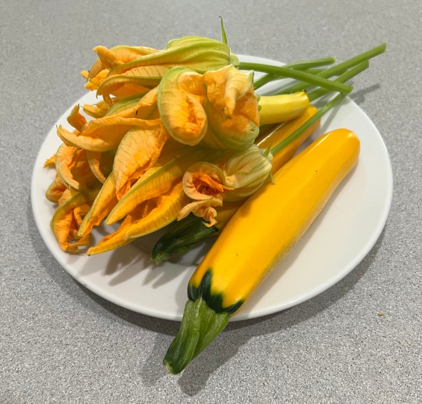 I grow several varieties of squash and pumpkins in my garden every year, so I’ve got an overload of blossoms. They’re delicious sweet or savory.