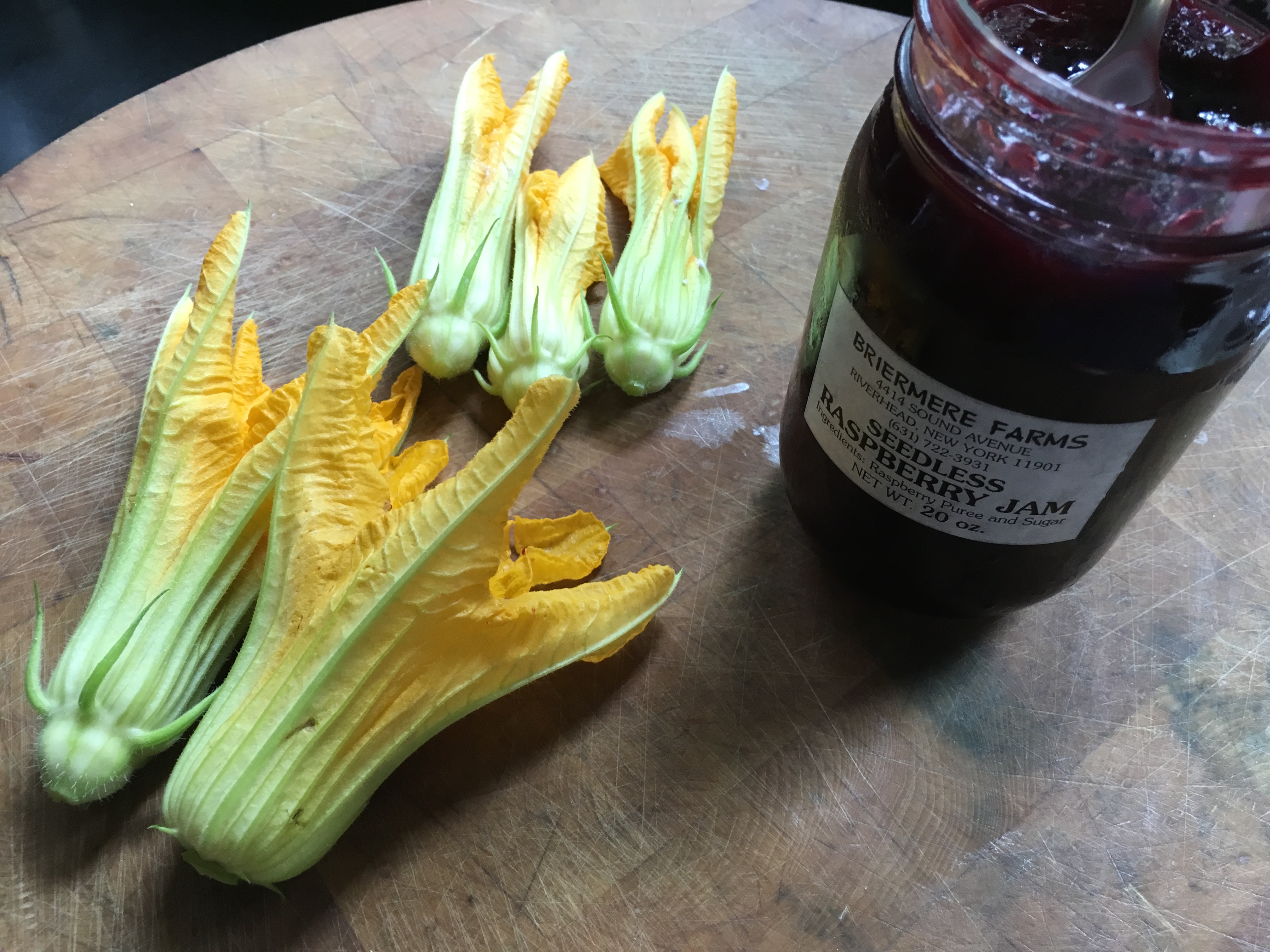 Blossoms stuffed with strawberry cream cheese and the fantastic raspberry preserves from Briermere Farms on the North Fork of Long Island!